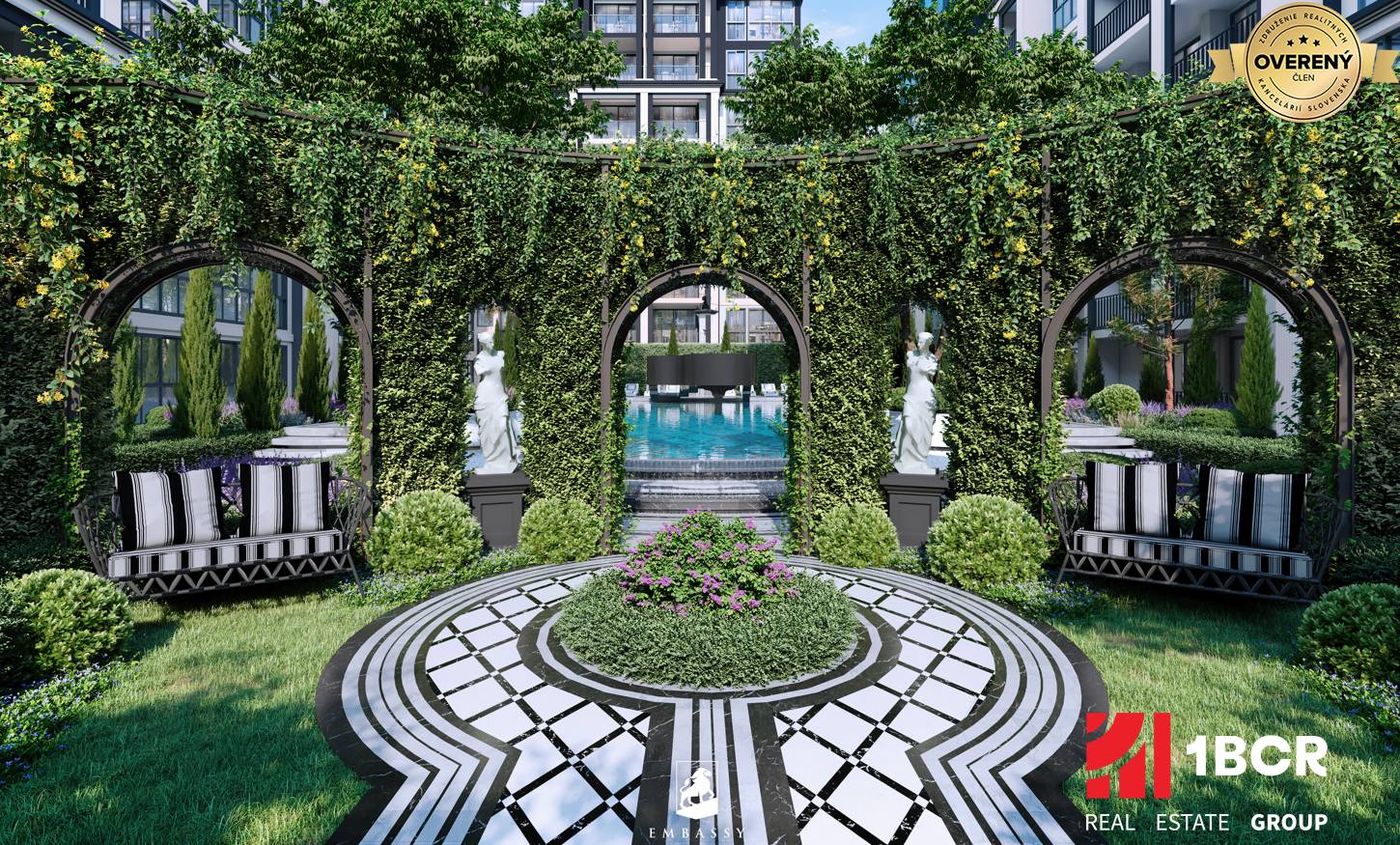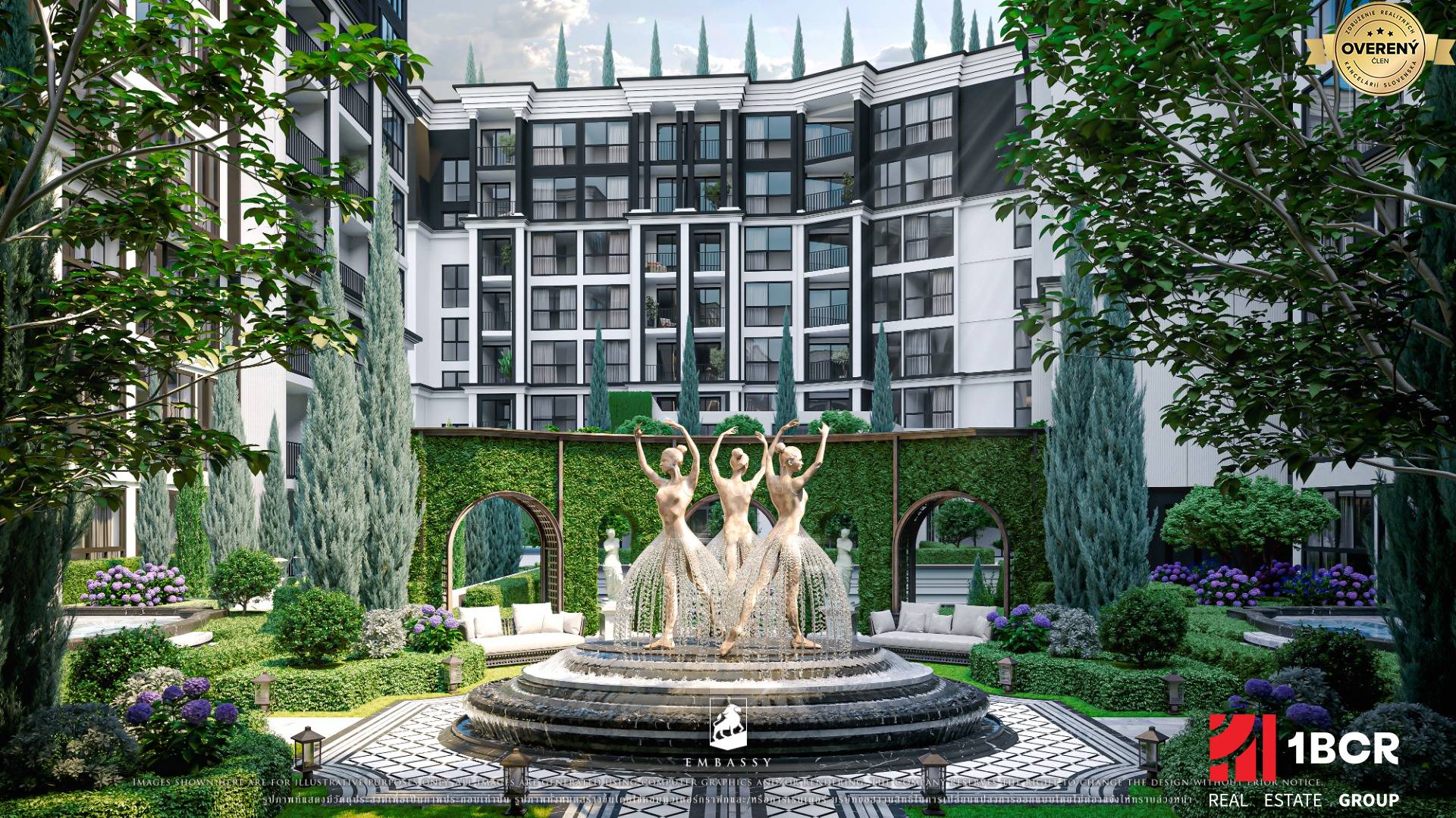 Another notable feature is the fountain with three ballerinas, located in the central landscaped garden. These sculptures symbolize grace, balance, and the beauty of movement, embodying the feminine spirit and the refined cultural character of the project. The fountain serves as both an aesthetic centerpiece and a quiet expression of the project’s philosophy: a fusion of luxury, art, and subtle elegance.